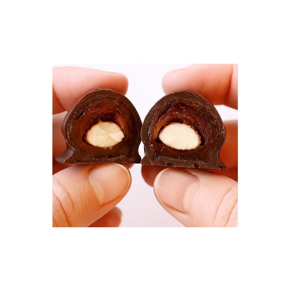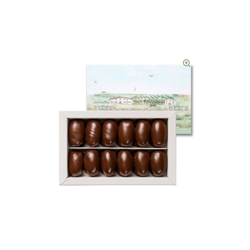 Each date is hand-stuffed with a whole almond and then covered with a thin layer of dark chocolate to enhance the richness and harmony of the flavors, without excess or added sugar.
