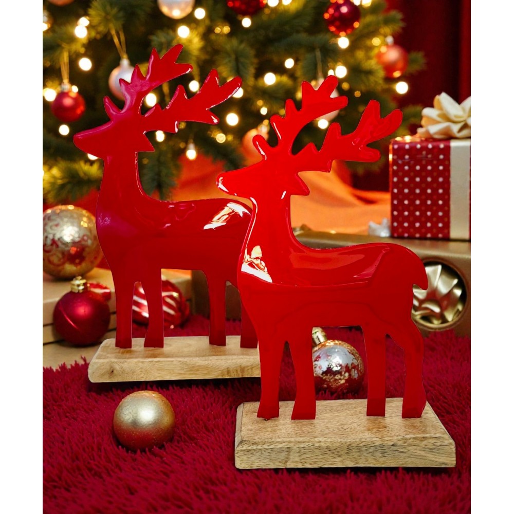 Set di due pezzi di cervi in metallo di colore rosso di due dimensioni differenti: