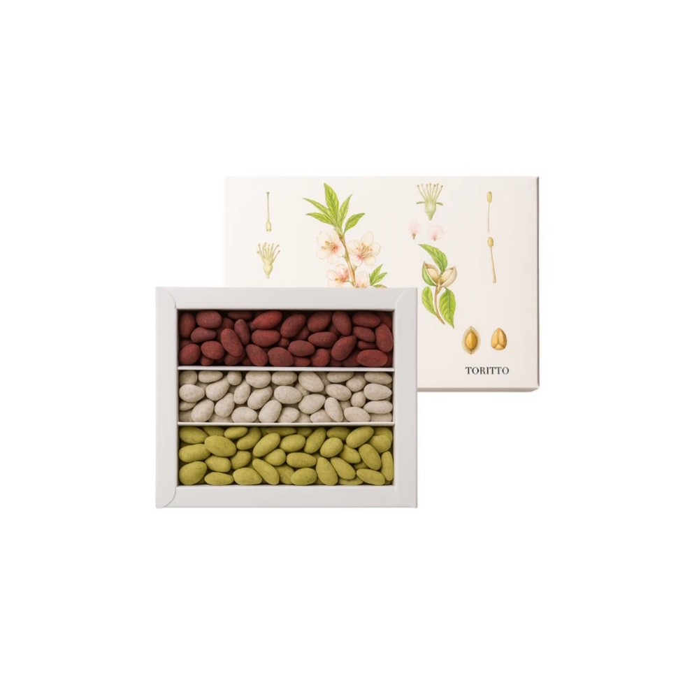 I Mandorlini di Toritto Assortiti uniscono la croccantezza della mandorla tostata, la golosità del cioccolato e le note aromatiche di ingredienti selezionati con cura, per un’esperienza gustativa originale, bilanciata e 100% vegetale.