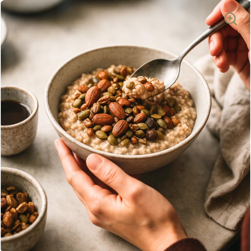 - I semi di zucca, ricchi di magnesio, ferro e zinco, contribuiscono al benessere muscolare, al sistema immunitario e al metabolismo.