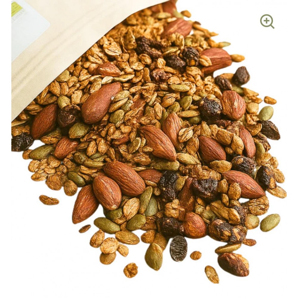 Una miscela croccante e naturale, realizzata con ingredienti biologici selezionati per offrire un gusto autentico e un profilo nutrizionale bilanciato.